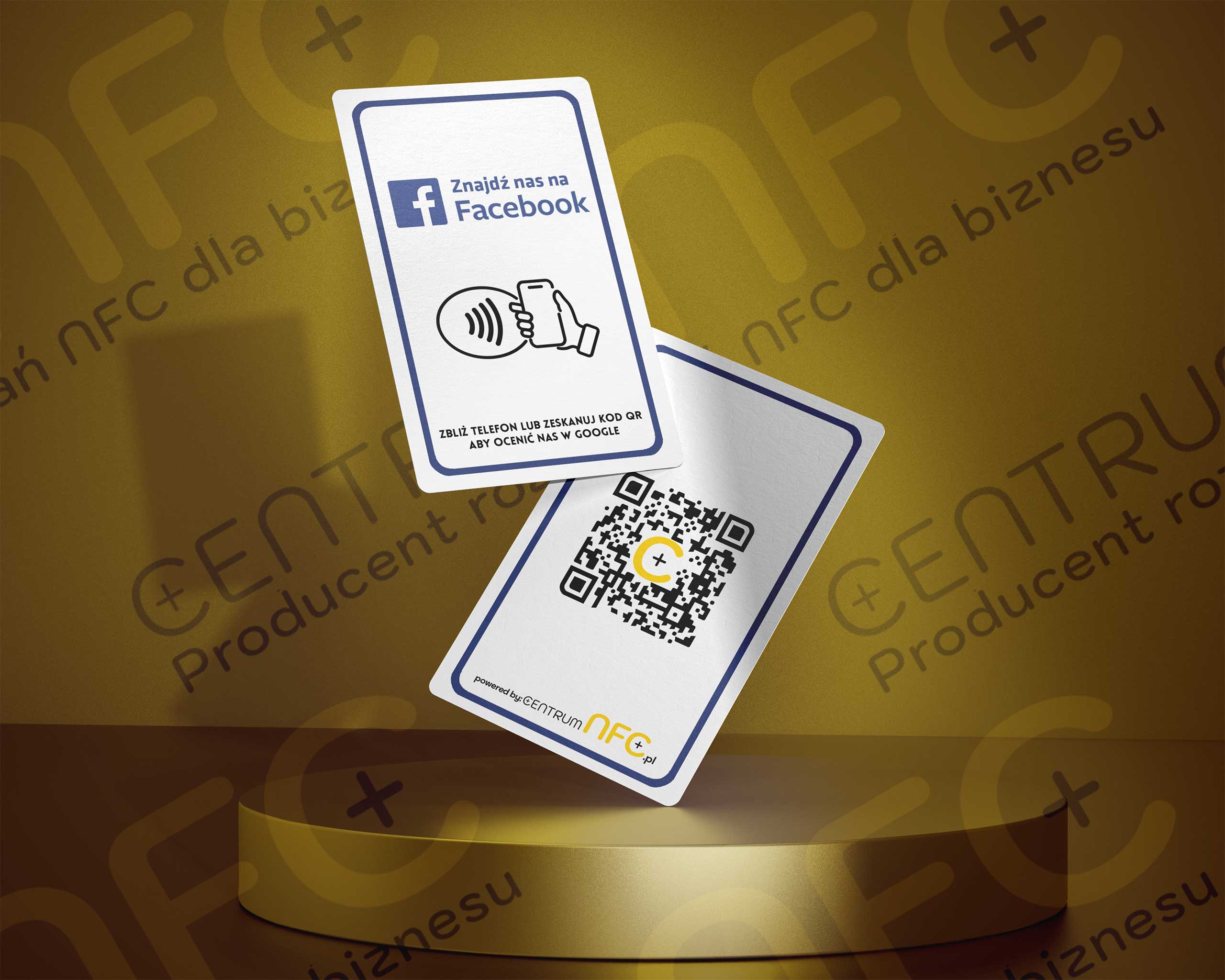 Karta NFC w rozmiarze CR80, kolor biały połysk, druk CMYK, chip NFC.
